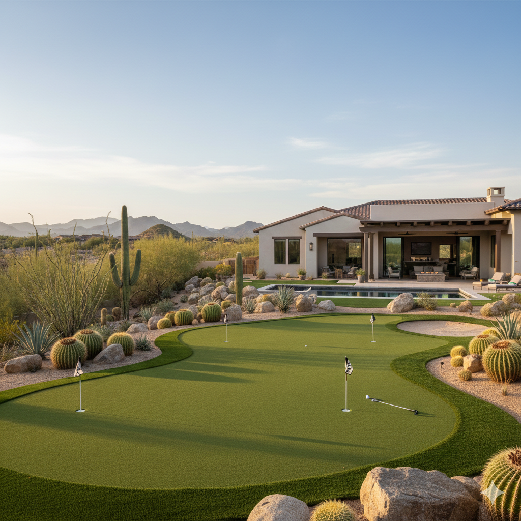 A custom backyard putting green is the ultimate addition to any Scottsdale home. At Pro Artificial Turf Scottsdale, we don’t just “lay grass”—we engineer professional-grade practice facilities. Using specialized high-density putting turf and cooling infill technology, we ensure your green stays playable even in the peak of the Arizona summer.